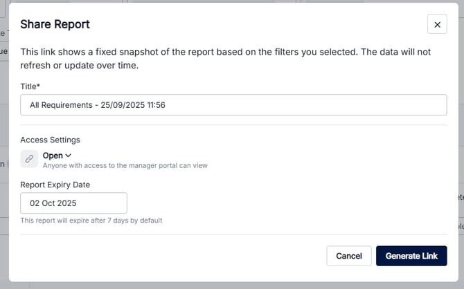 (Optional) Set an expiry date – by default, the report will expire after 7 days.