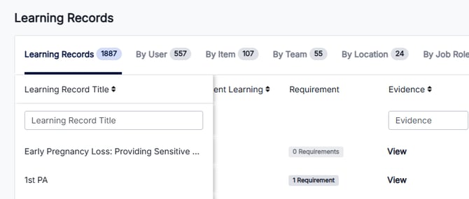 Uploaded files appear in the Evidence section of the learning record for both the learner and their manager to view.